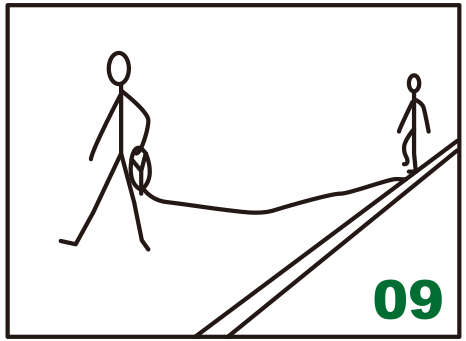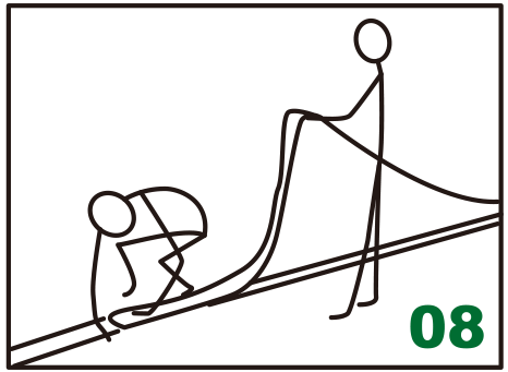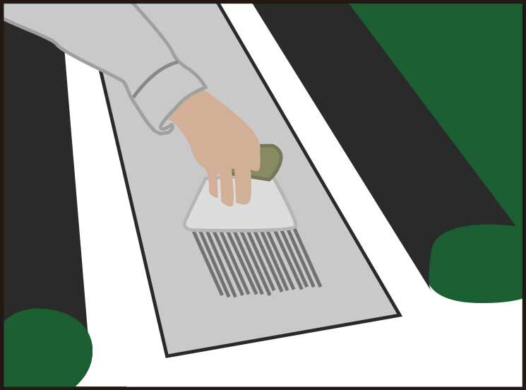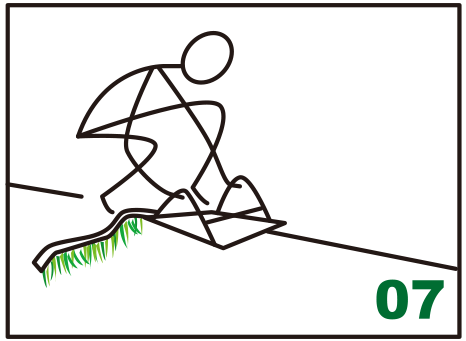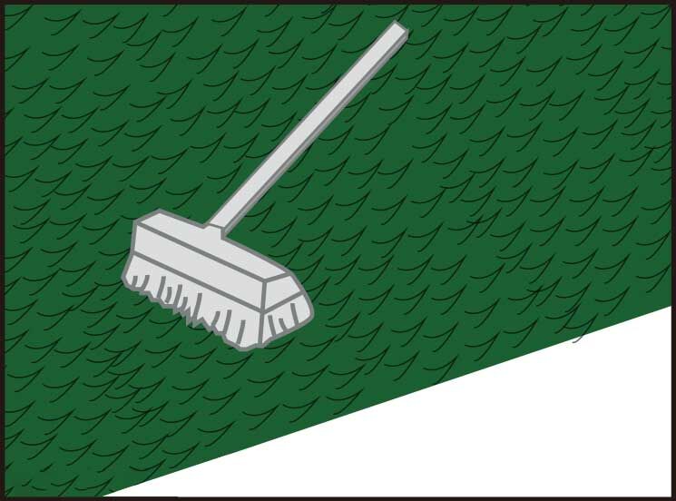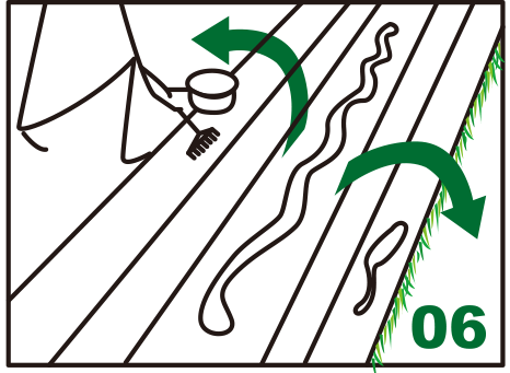 Расчесывание упавшей травы после того, как весь участок травы был склеен.