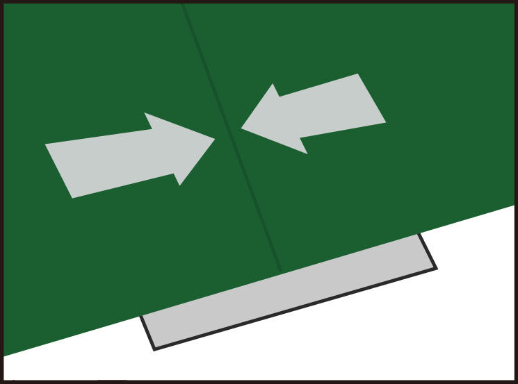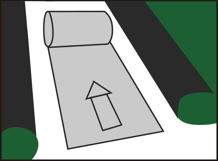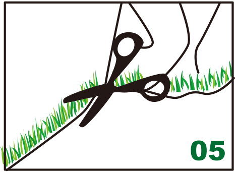 Положите ленту под травой. Старайтесь, чтобы шов травы оставался в центре соединительной ленты.