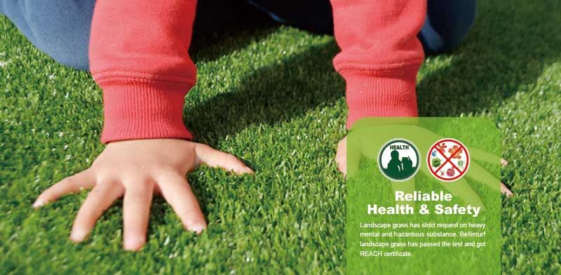 Газон Bellinturf для игровых площадок разработан с учетом хорошей устойчивости, упругости, износостойкости, и изготовлен в соответствии со строгими стандартами безопасности, включая REACH и RoHS. Система покрытия игровых площадок включает в себя установку надлежащей подложки и подходящего наполнителя, чтобы гарантировать соответствие газона стандартам GMAX и HIC, отвечающих за безопасность детей.